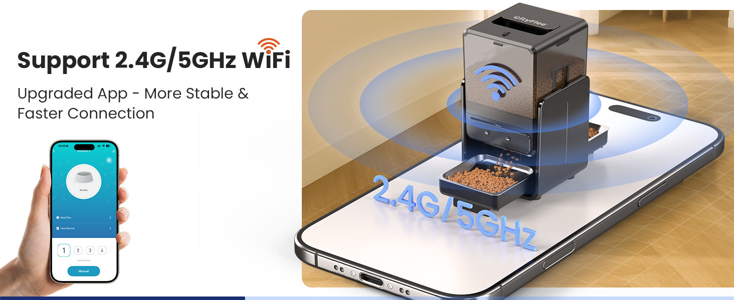 - 5G Stable Wi-Fi Connection: Cityflee automatic cat food dispenser can connect to 5G/2.4G Wi-Fi. Compared to 2.4G Wi-Fi, this feeder with 5G feature would connect to network more stably. You don’t need to worry about failing to control when you are out of home