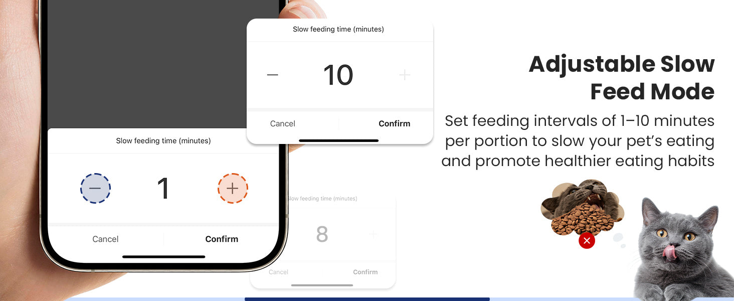- Dual Power for Peace of Mind: Stay worry-free with dual power- adapter and 4 AA non-rechargeable batteries (not included) with automatic switch-over during outages. 45-day battery backup ensures reliability. Record a 10-second custom meal call to comfort your pets and build a stronger bond