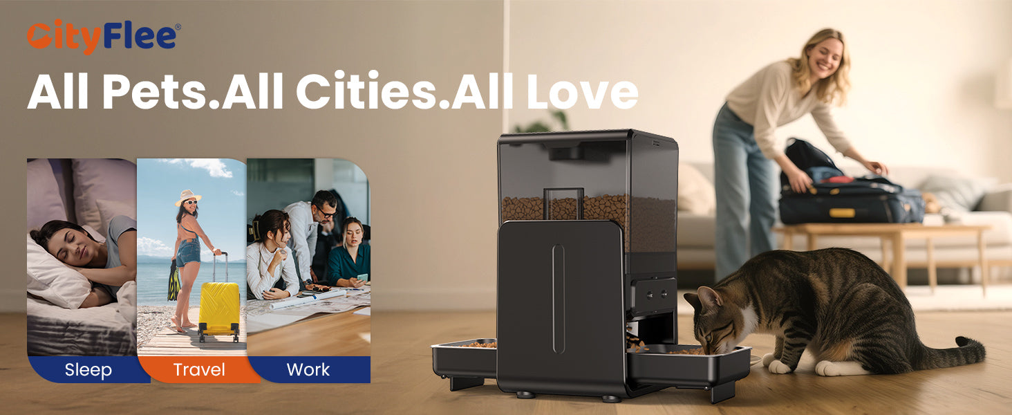 - Easy to Use & Clean: The CityFlee auto cat feeder (BPA-free) comes with 2 removable troughs and 2 stainless steel bowls - easy to install, clean, and maintain. Setup is beginner-friendly, and regular cleaning ensures hygienic feeding. Worry-free support is always available