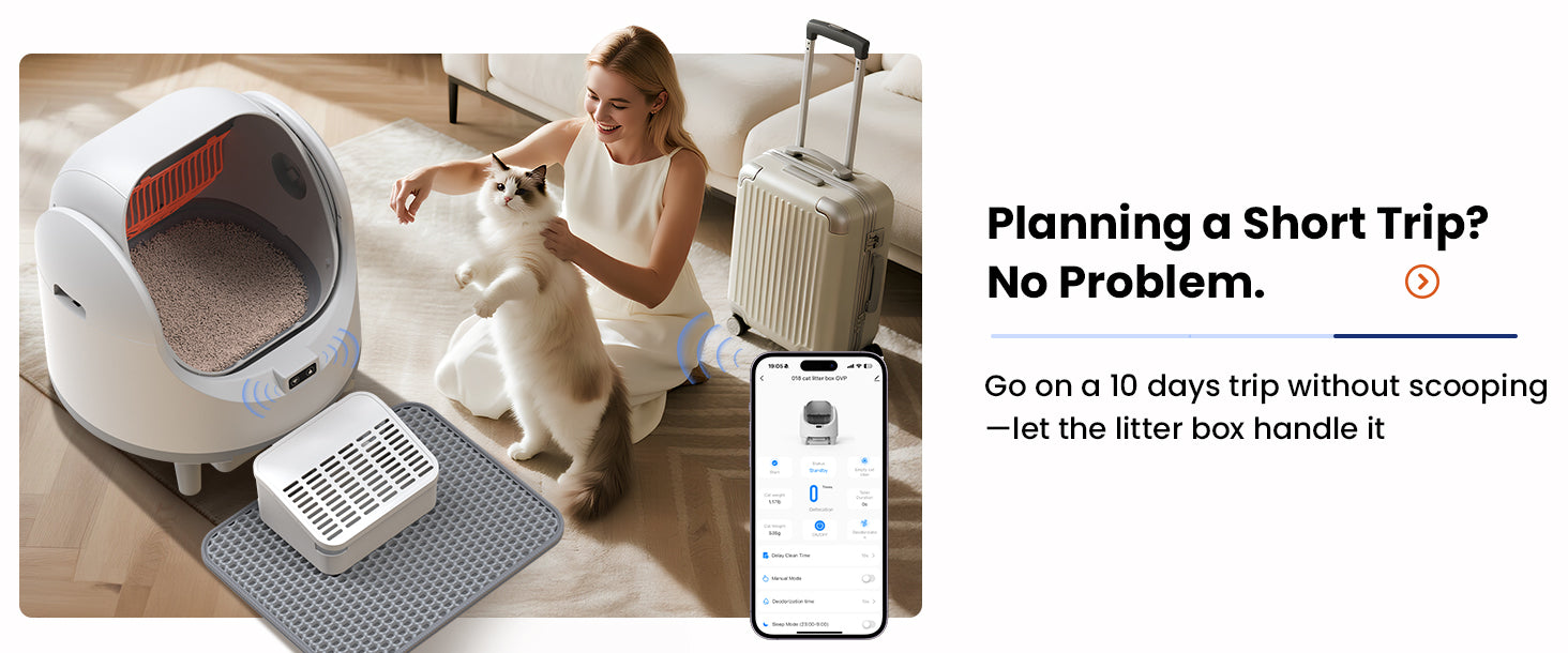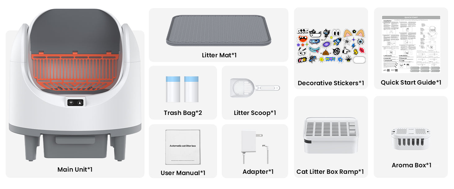 - All-in-One Set-Litter Mat, Waste Box & More: This self-cleaning cat toilet comes with everything you need: a litter-catching mat, waste collection box, scooper, and disposable bags. It supports up to 14 days of hands-free maintenance, making it perfect for busy pet owners