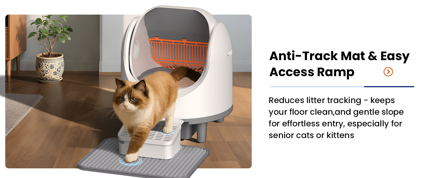 - Open-Top Design for Safe & Comfortable Access: Our open-top self-cleaning litter box provides easy access for your cat, reducing stress with more space for movement. The design helps cats of all sizes transition to automated litter care comfortably, ensuring safety and ease of entry and exit