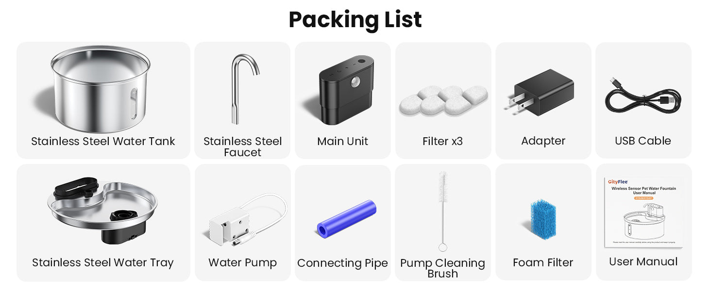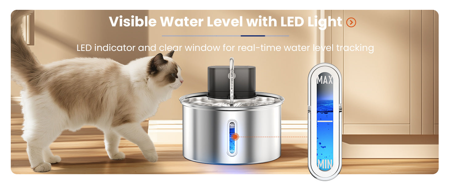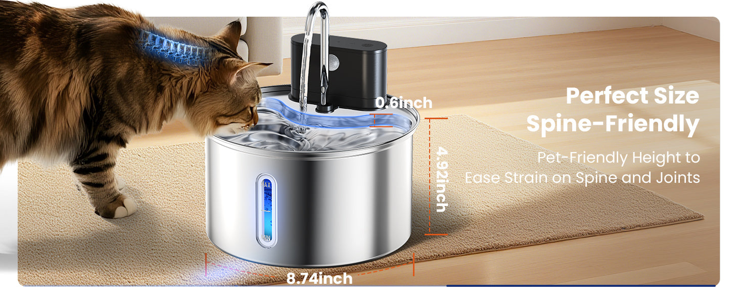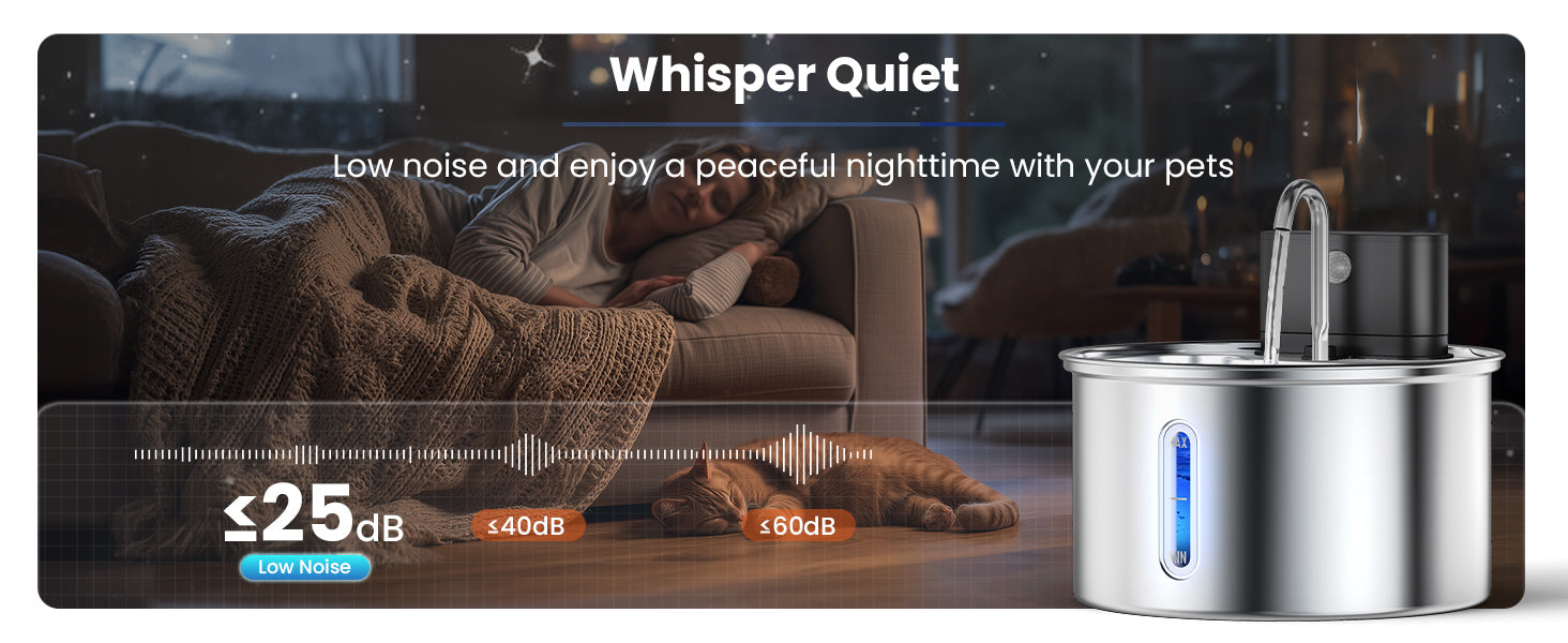 - Ultra Silent Design: Equipped with advanced AI noise reduction technology, this stainless steel cat water fountain operates at ≤25 dB; creates a peaceful environment for both you and your pet so nighttime drinking will not disturb your rest