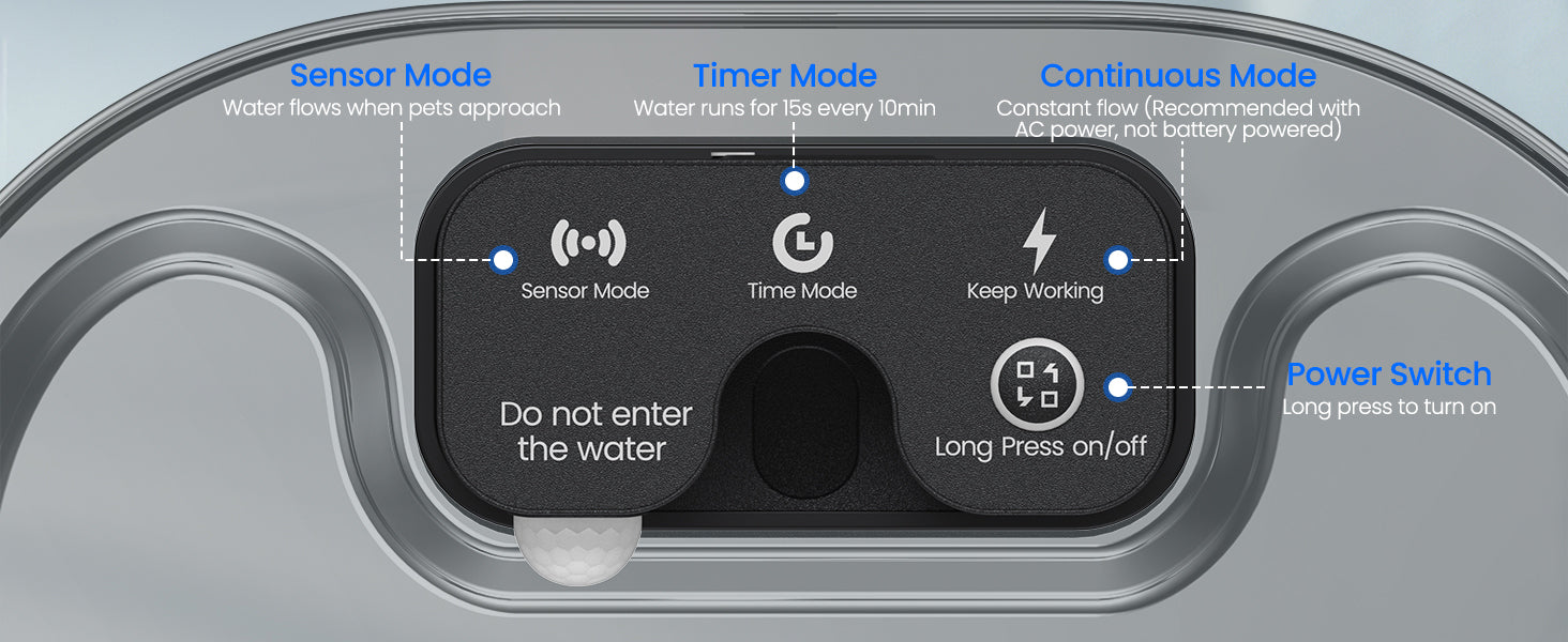 - Innovative 3 Working Modes – Tailored for your pets, the water fountains for cats indoor offer three modes: Continuous Flow(Only available when plugged in), Motion-Activated(120° x 50cm range), and Timer Mode(Water runs for 15s every 15min), ensuring your pet has fresh water whenever needed