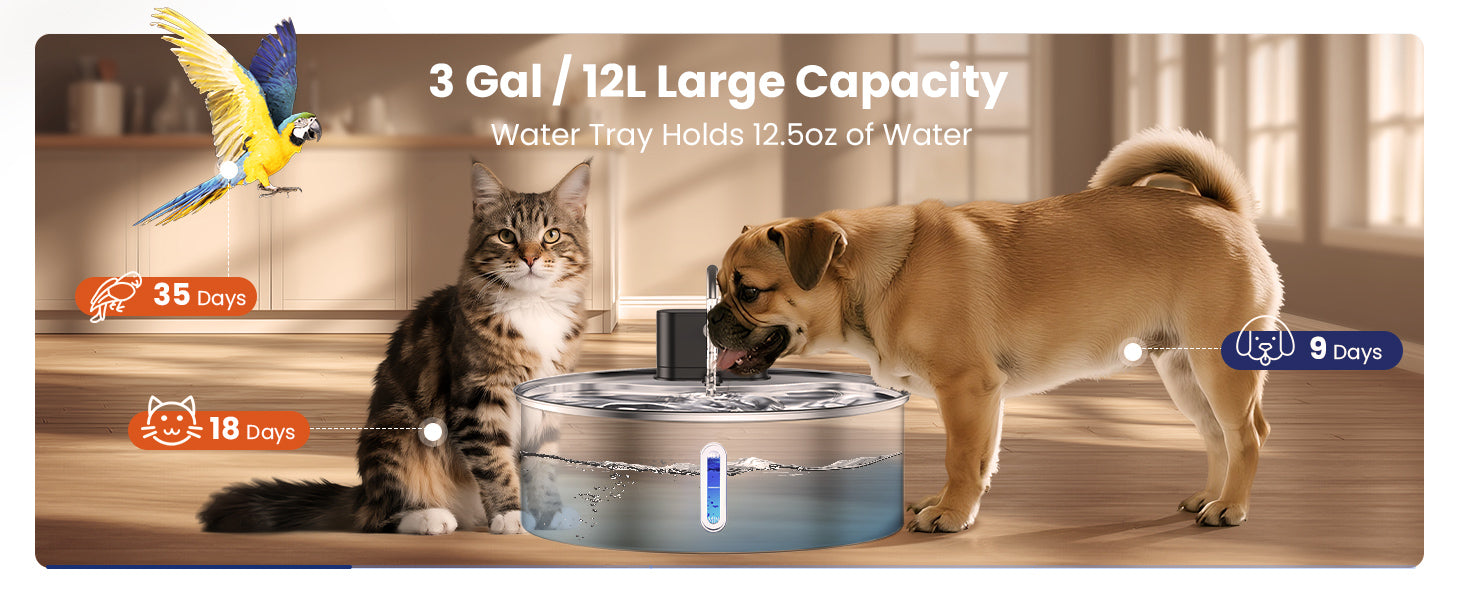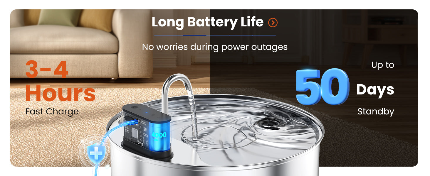 - Long-Lasting Battery Life: The pet water fountain features a 4000 mAh battery that charges in three to four hours and provides up to fifty days of use on a single charge; its 3.5 L capacity reduces frequent refills, giving you peace of mind during power outages or short trips
