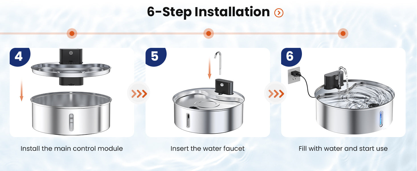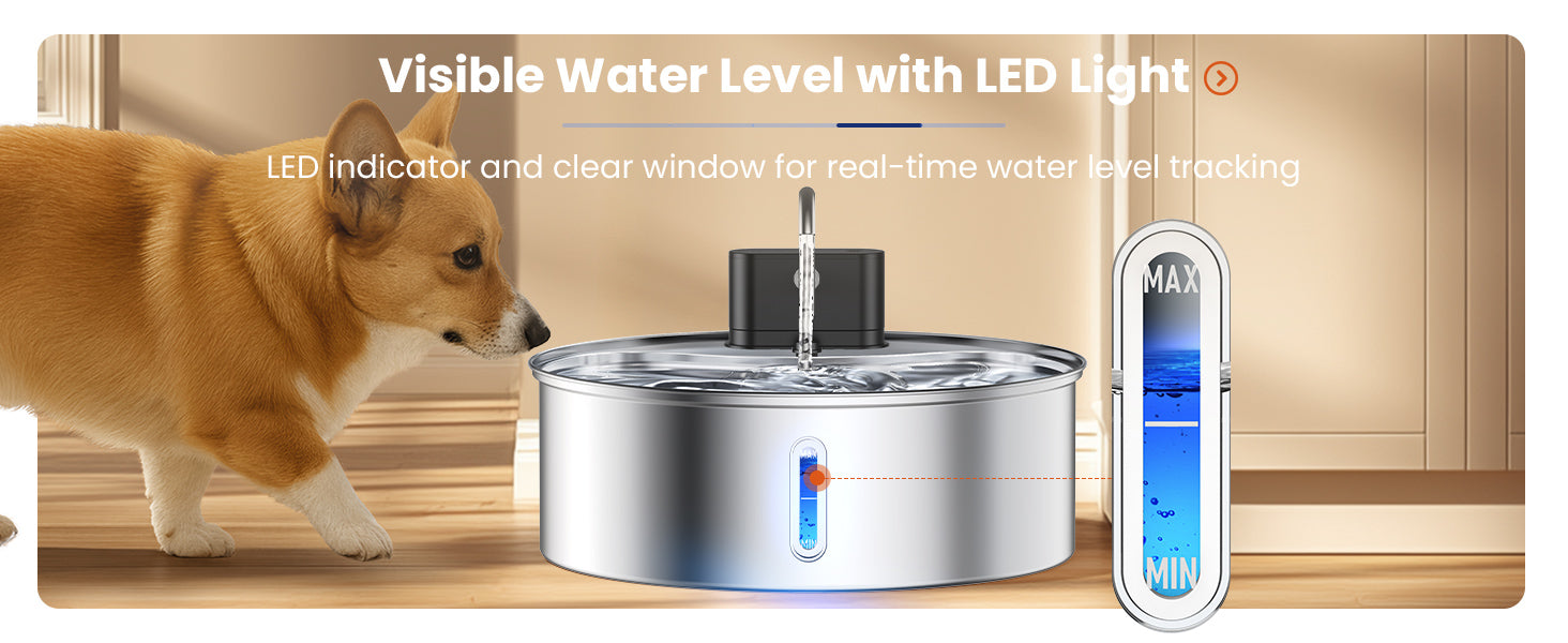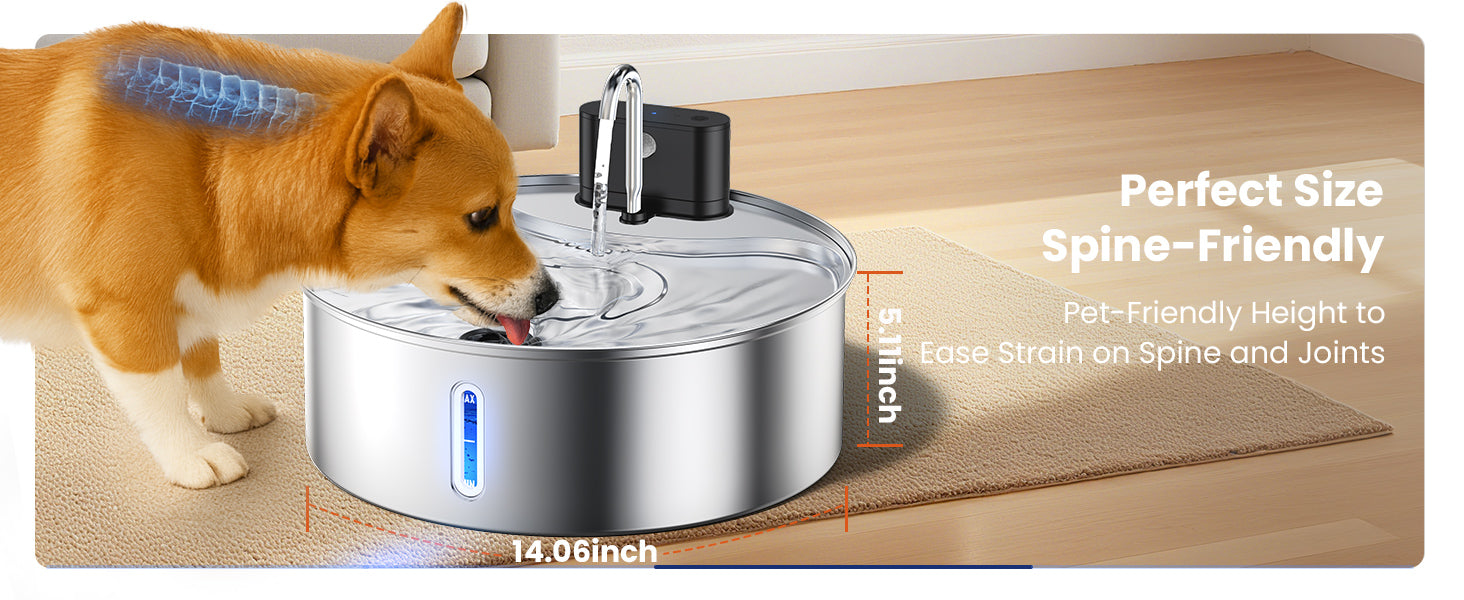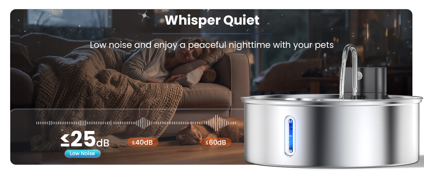 - Ultra Silent Design: Equipped with advanced AI noise reduction technology, this stainless steel cat water fountain operates at ≤25 dB; it creates a peaceful environment for both you and your pet so nighttime drinking will not disturb your rest.