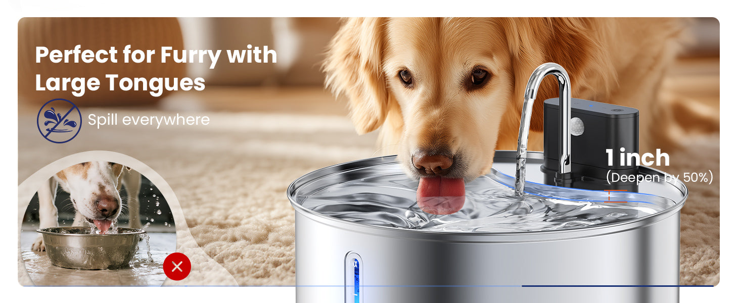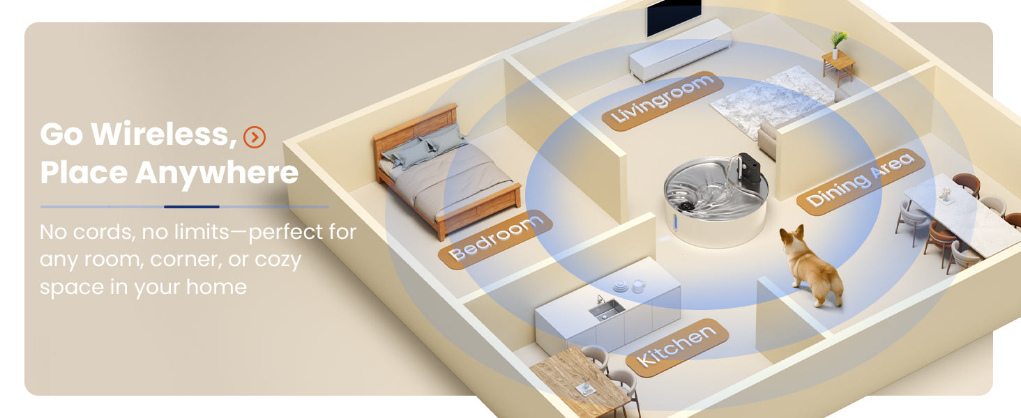 - Wireless Safety Design: Cordless and rechargeable dog water fountain prevents pets from chewing wires and eliminates tripping hazards; can be moved and placed anywhere in your home and encourages your furry friends to drink more